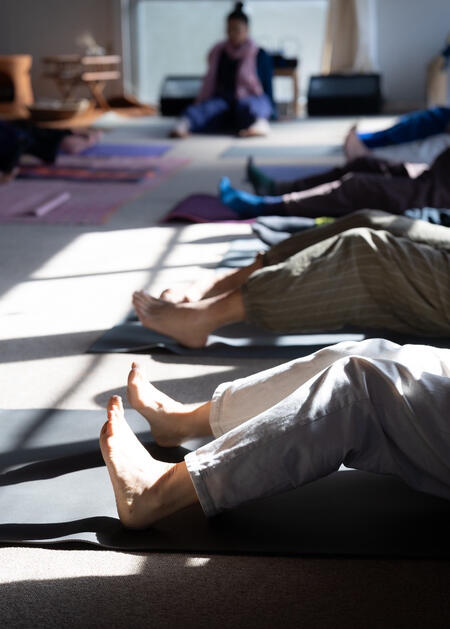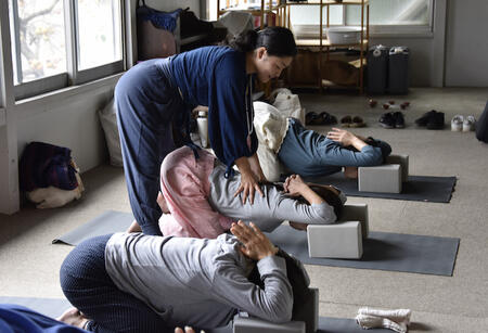 ご自身の心身を深く知るためセルフマッサージやペアワークを取り入れたクラスです。食養生や自然育児などライフスタイルから見直して行きたい方におすすめです。火曜夜クラスは瞑想やリラクゼーションヨガを中心に行って行きます。